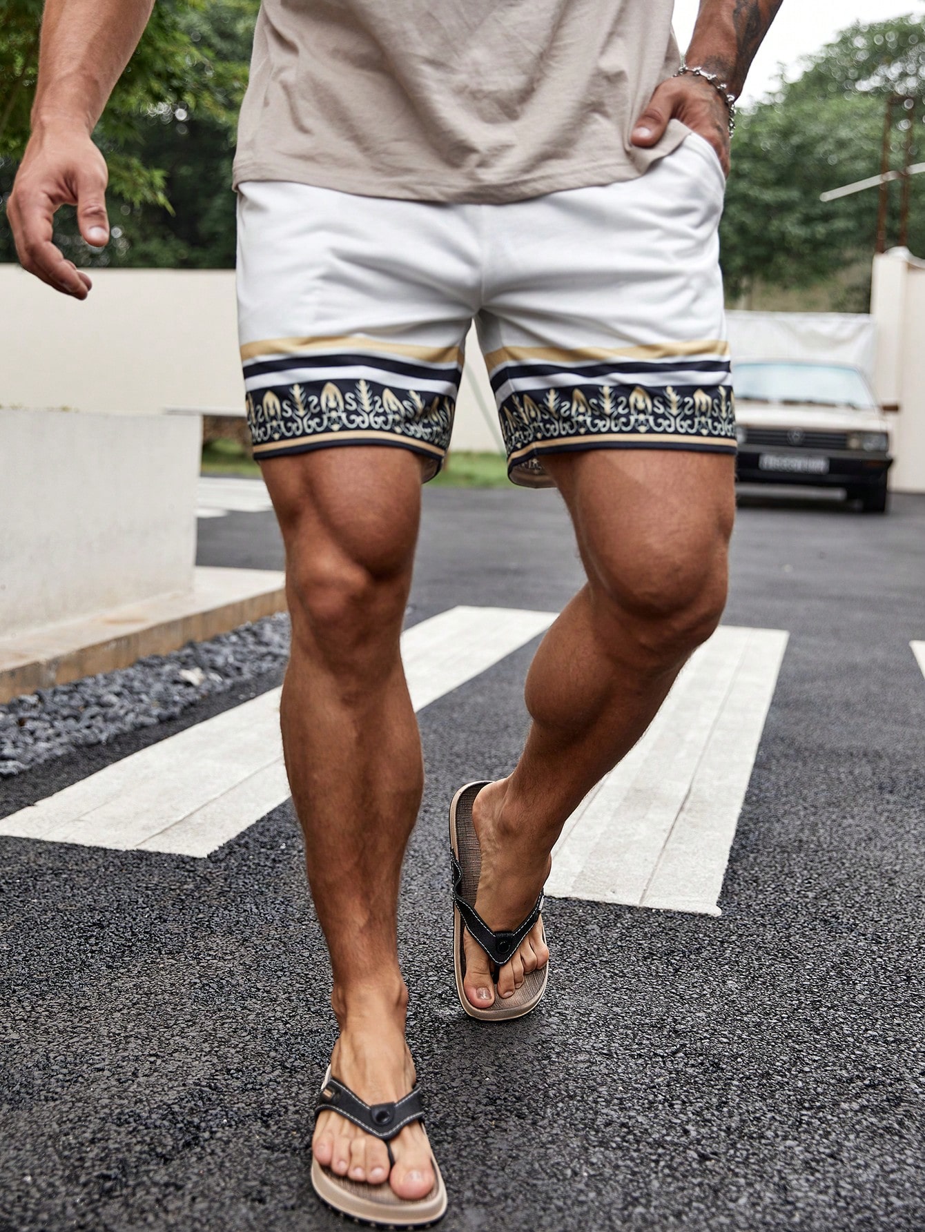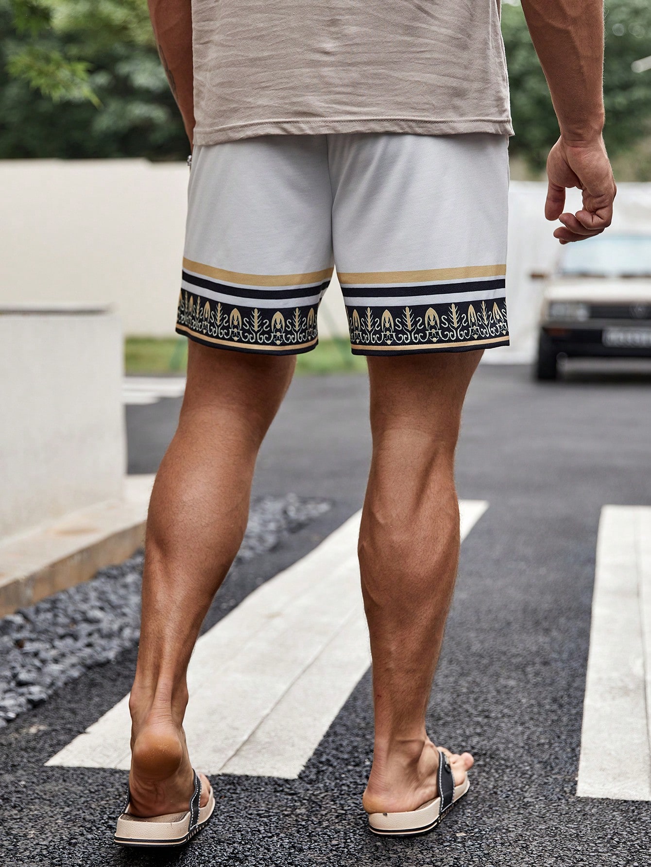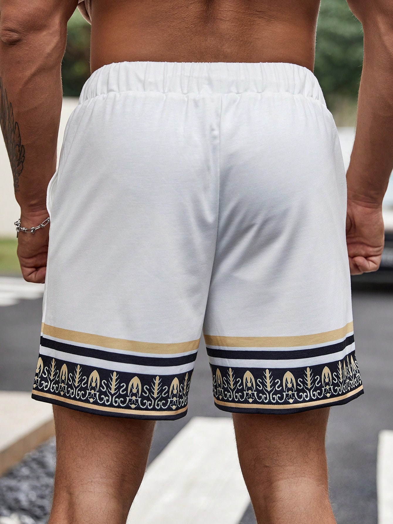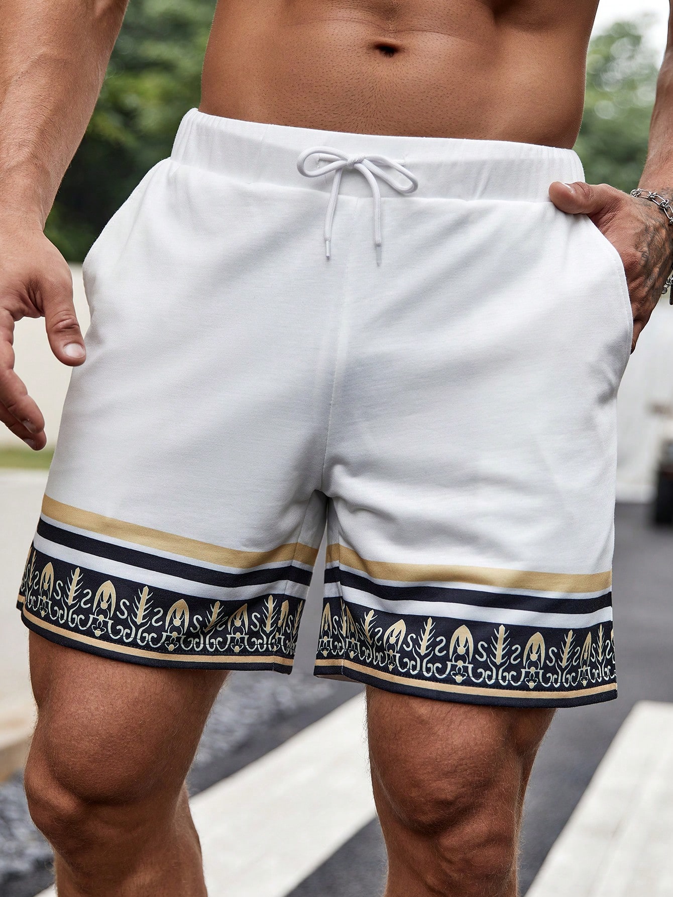 Manfinity KASUA Loose Men’s Striped Print Shorts With Drawstring Waist Pattern Cool Graphic Colorful All White Vacation Casual Friends