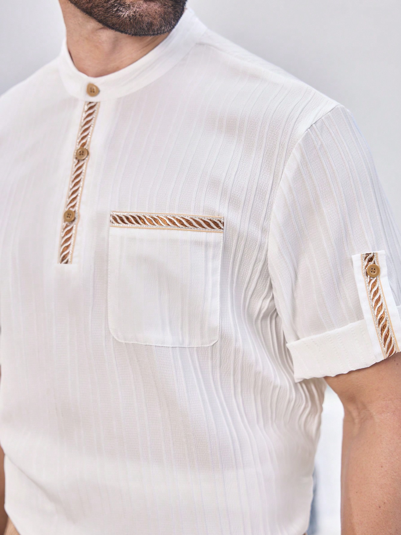 Manfinity KASUA Men Casual Patchwork Pocket V-Neck Roll-Tab Sleeve Top And Jogger Pants Set