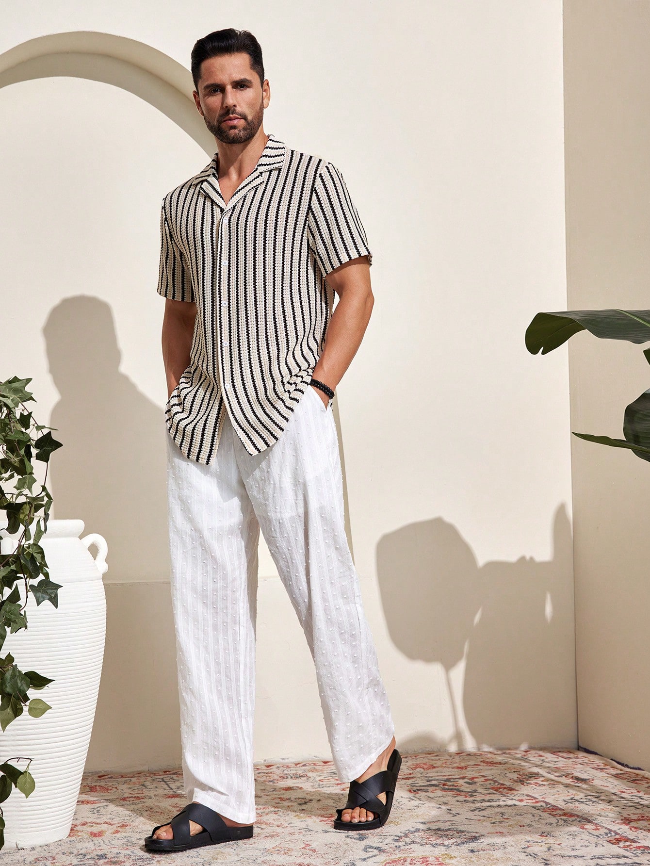 Manfinity KASUA Men’s Striped Printed Button Front Short Sleeve Shirt