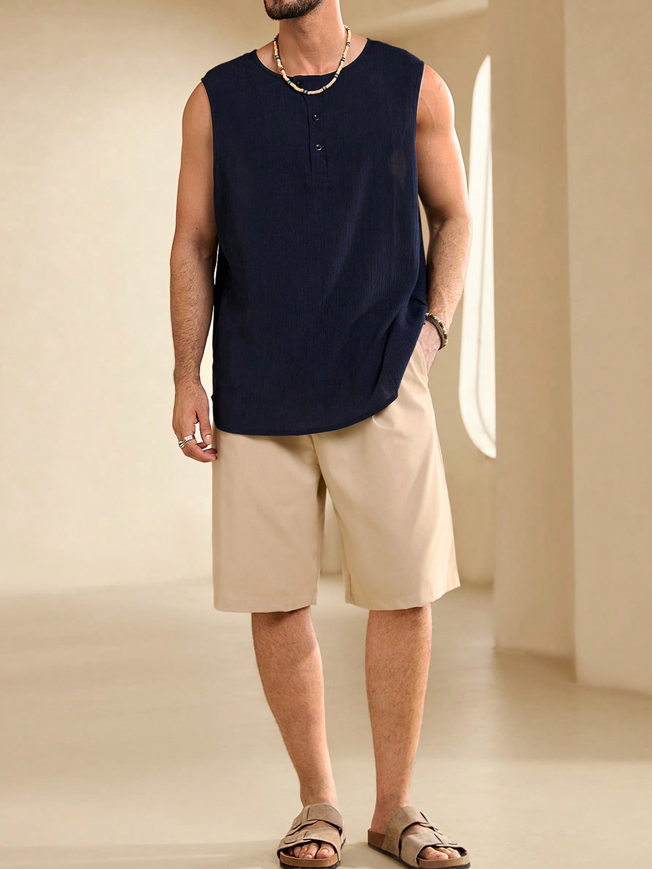成为第一个“Manfinity KASUA Men’s Summer Solid Color Button Half-Placket Loose Fit Tank Top” 的评价者