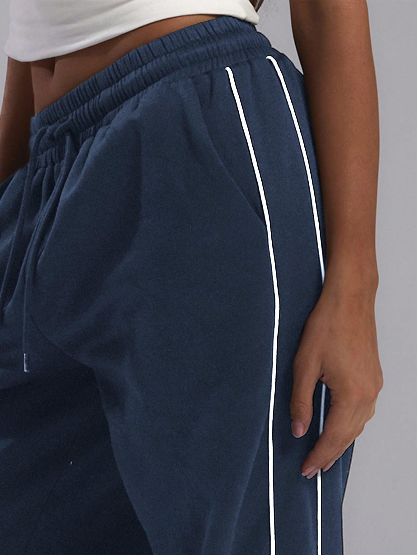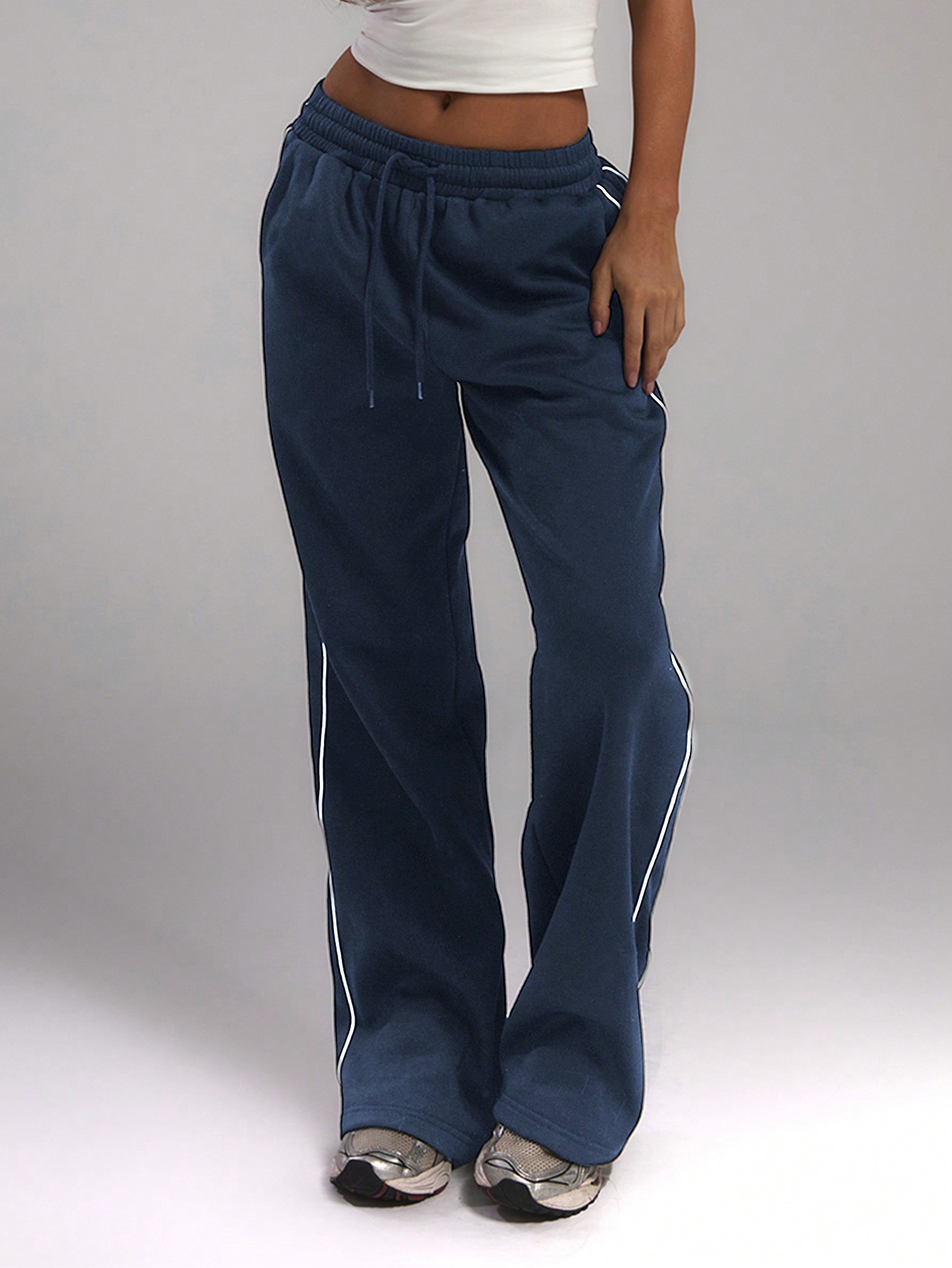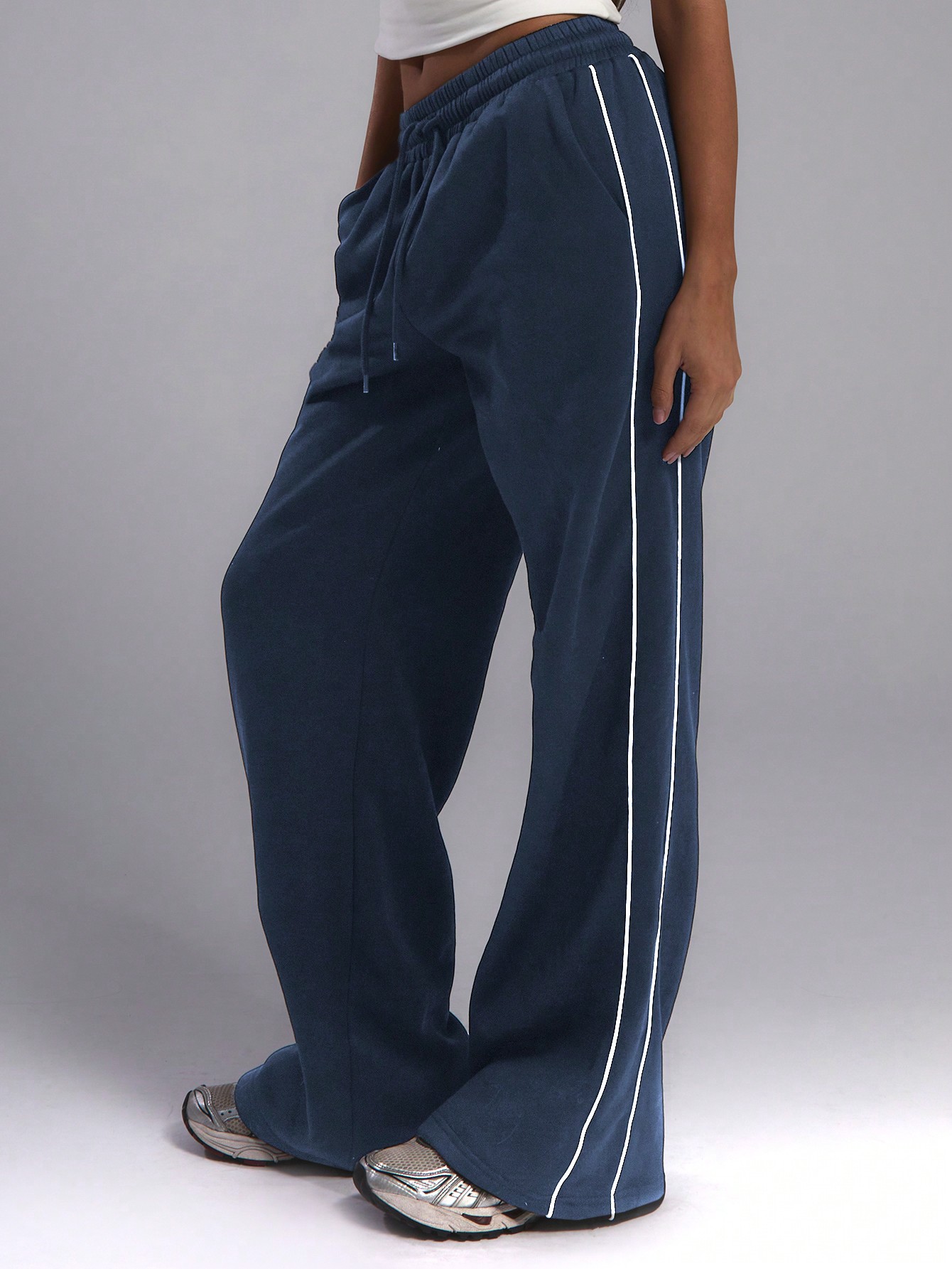 MUSERA Baggy Wide Leg Contrast Binding Joggers
