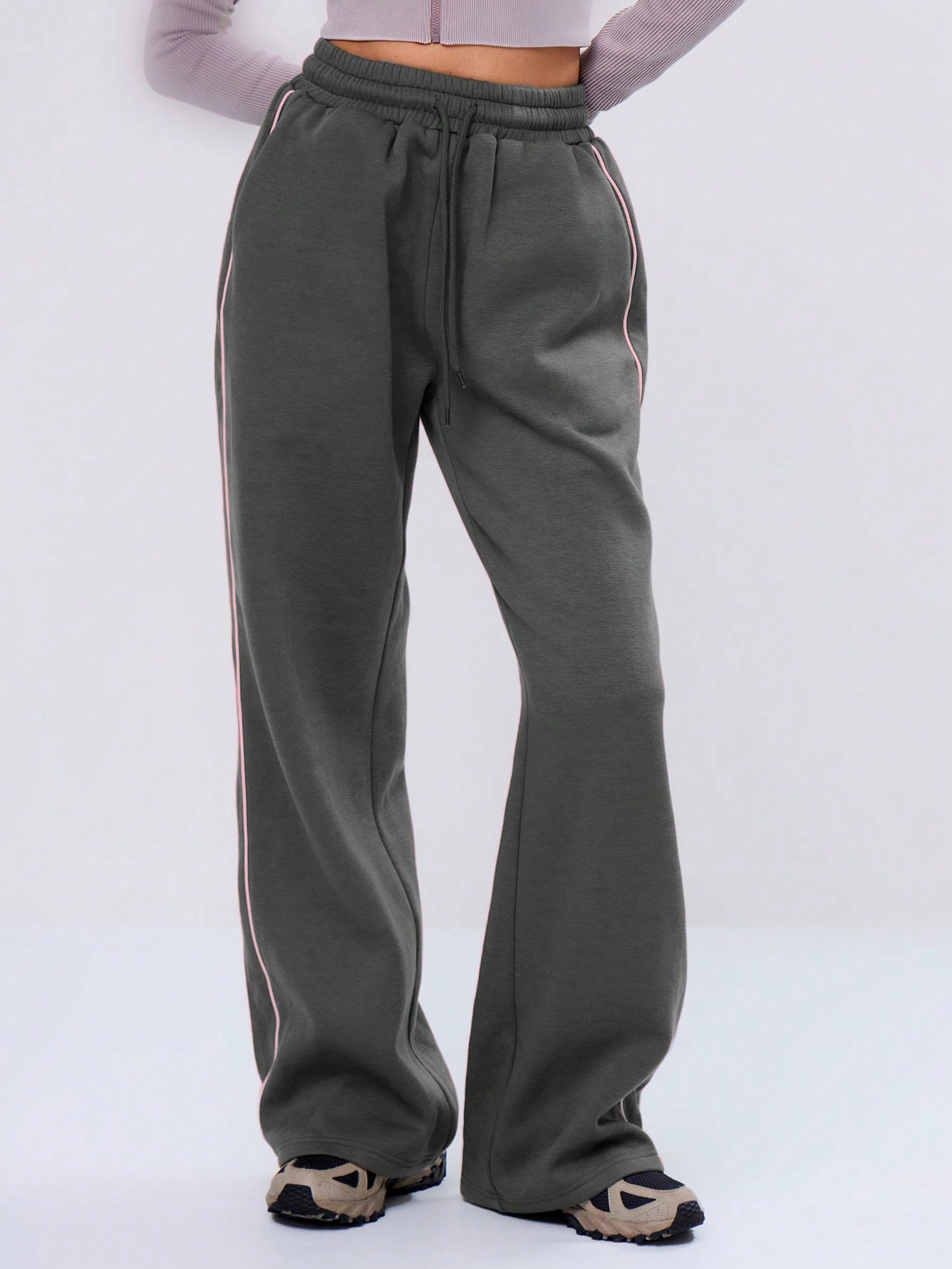 MUSERA Baggy Wide Leg Contrast Binding Sweatpants