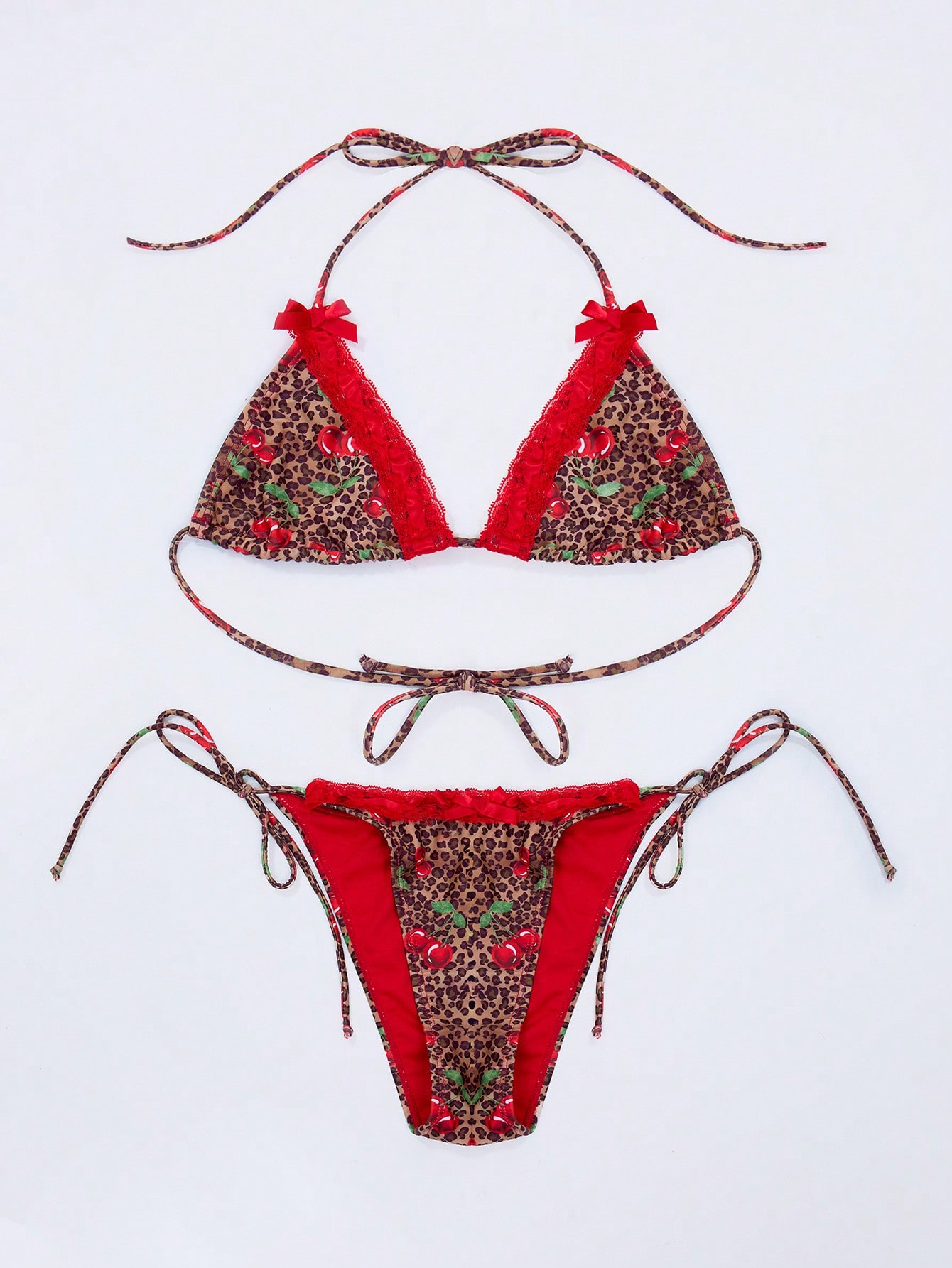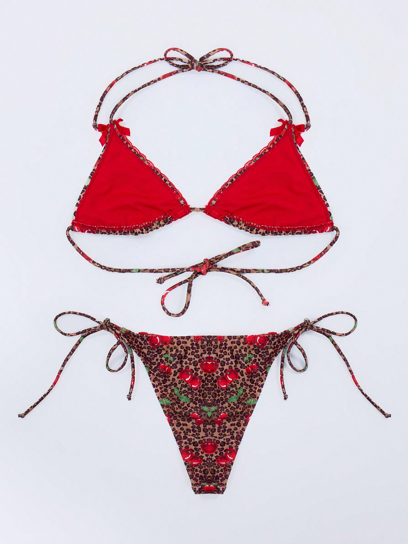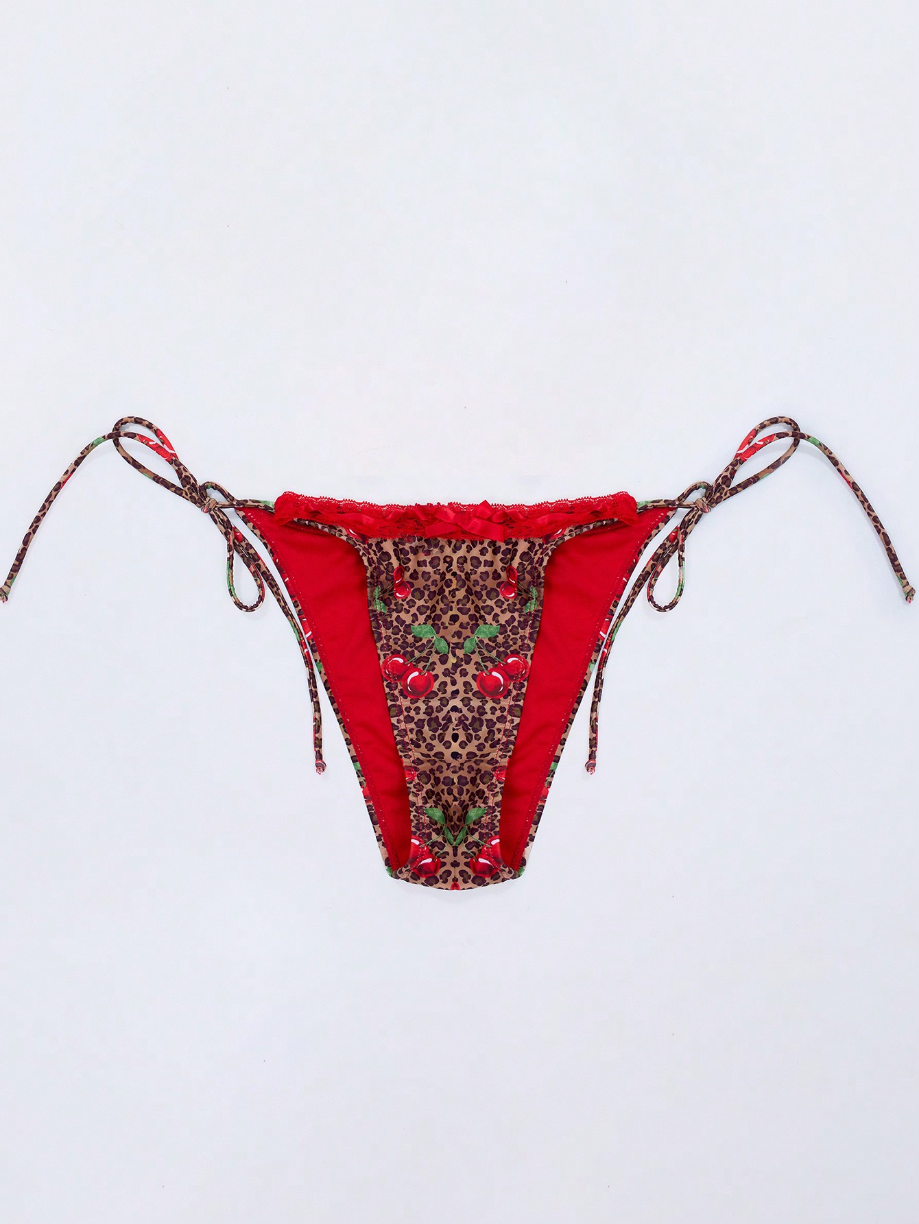 MUSERA Cherry Leopard Ribbon Detail Thong Bikini Bottom
